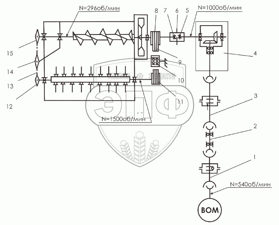 Каталог запасных частей к технике: Клевер ЗИС-2,0 "Kiwi". Кинематическая схема