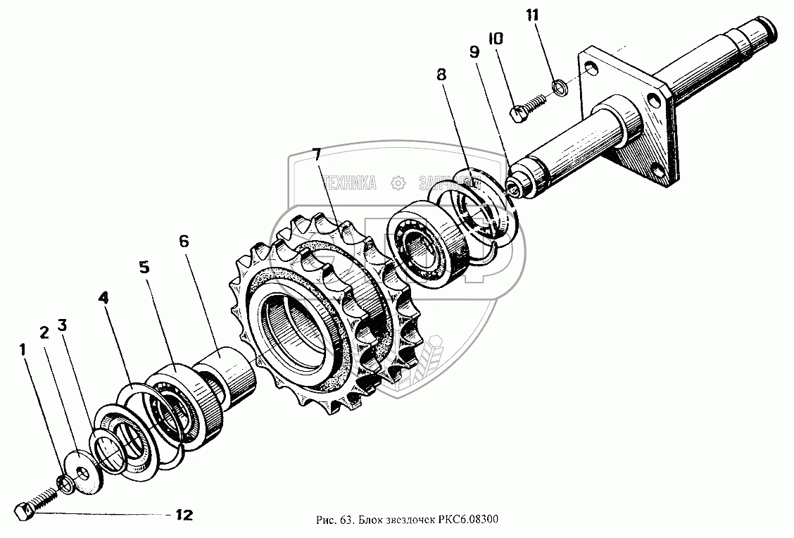 Каталог запасных частей к технике: Красная Звезда СПС-4,2А. Блок звездочек РКС6.08300