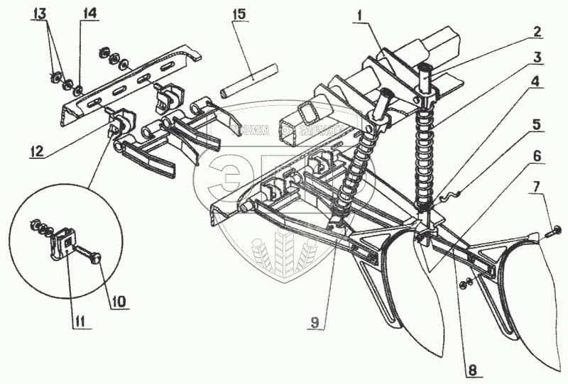 Каталог запасных частей к технике: Красная Звезда СЗ-5,4. Механизм навески сошников
