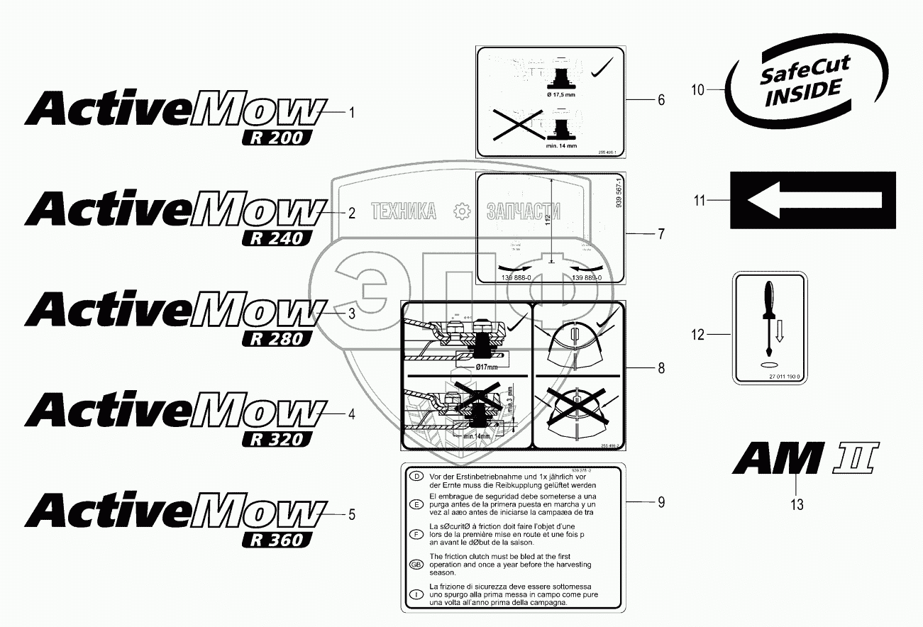 Каталог запасных частей к технике: KRONE ActiveMow R240. General information labels