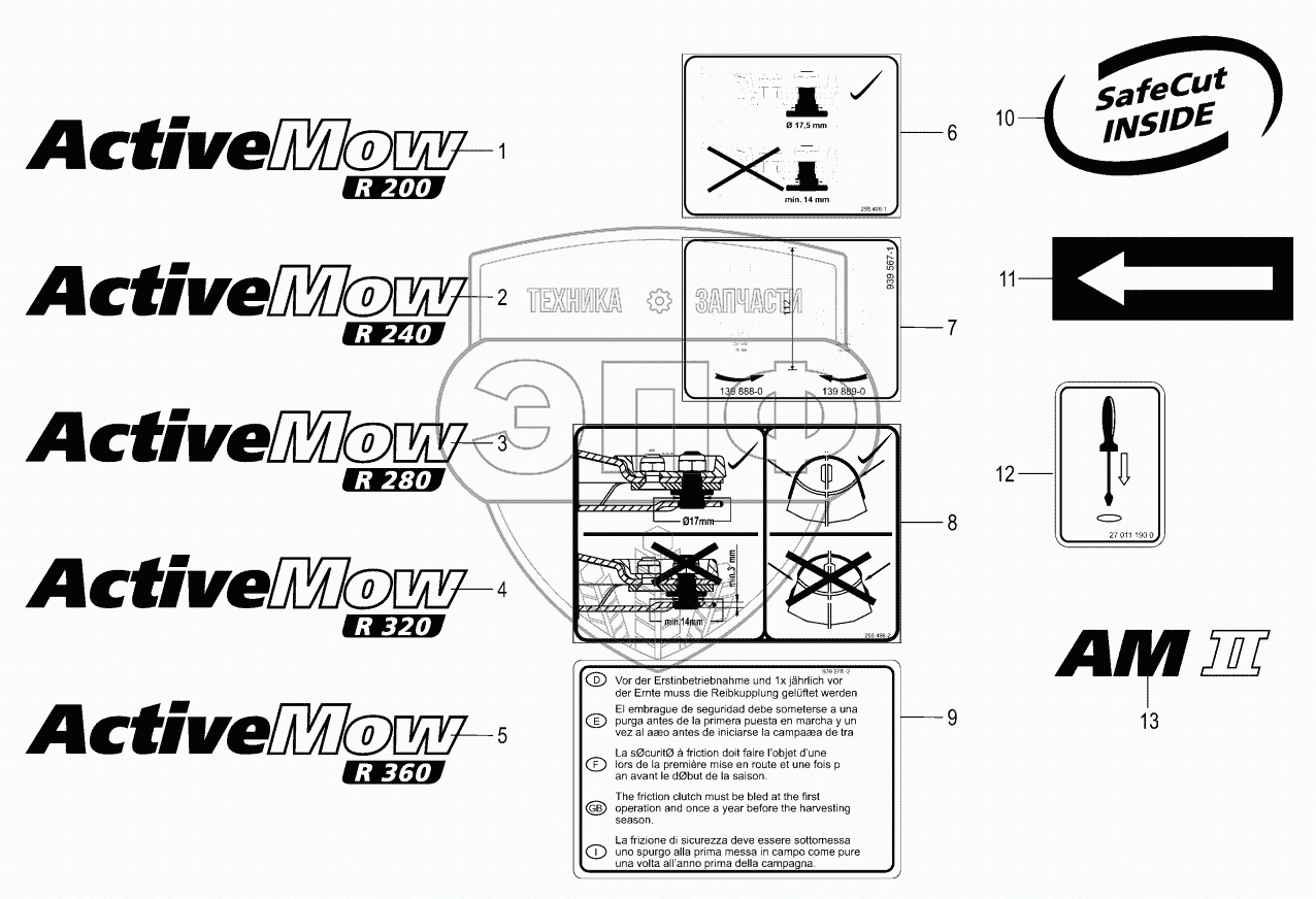 Каталог запасных частей к технике: KRONE ActiveMow R360. General information labels