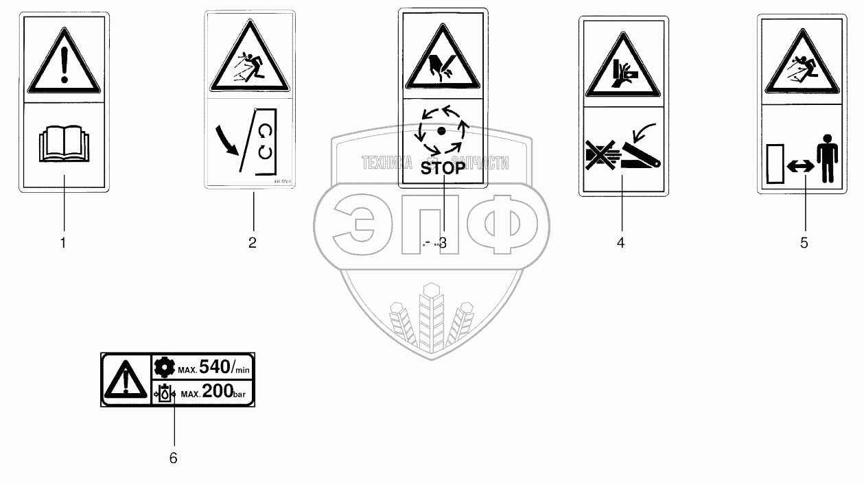 Каталог запасных частей к технике: KRONE AM 203CV, AM243CV, AM283CV. Warning signs