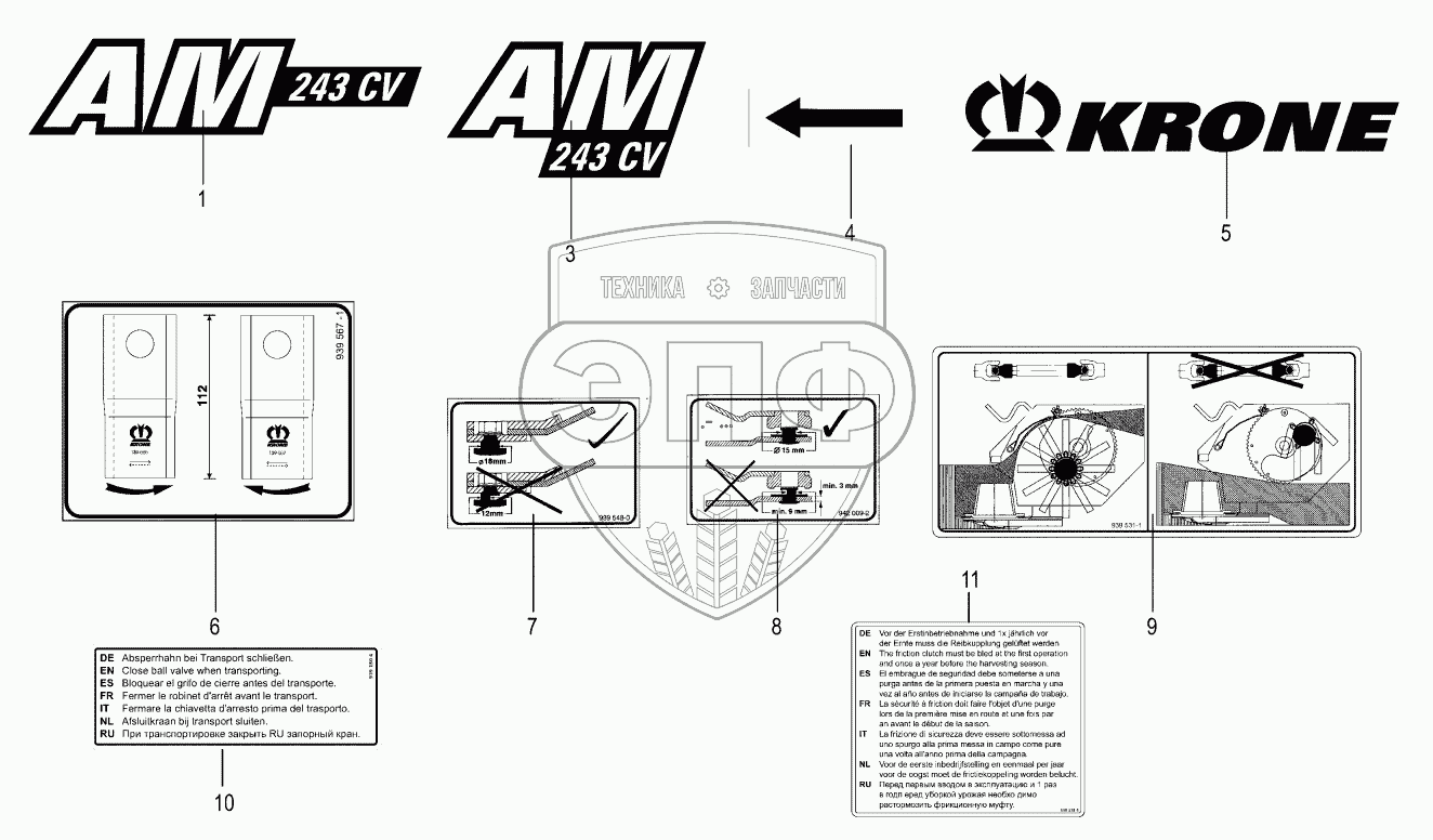 Каталог запасных частей к технике: KRONE AM 243CV. General information labels