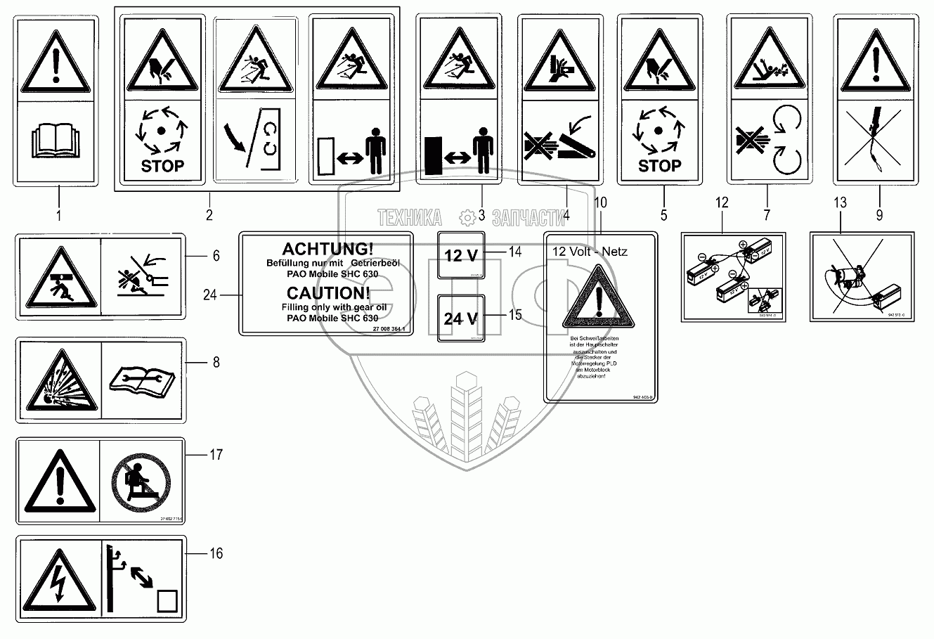 Каталог запасных частей к технике: KRONE BIG-M-420. Warning signs