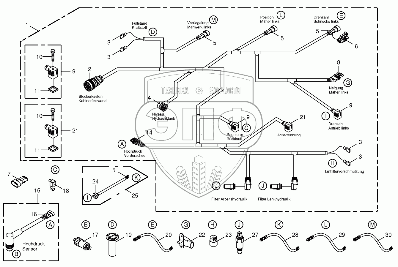Каталог запасных частей к технике: KRONE BIG-M-420. Wiring Harness-lateral left