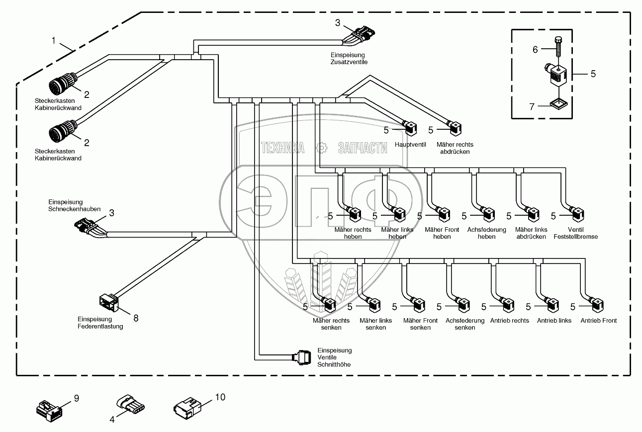 Каталог запасных частей к технике: KRONE BIG-M-420. Wiring Harness-valve block