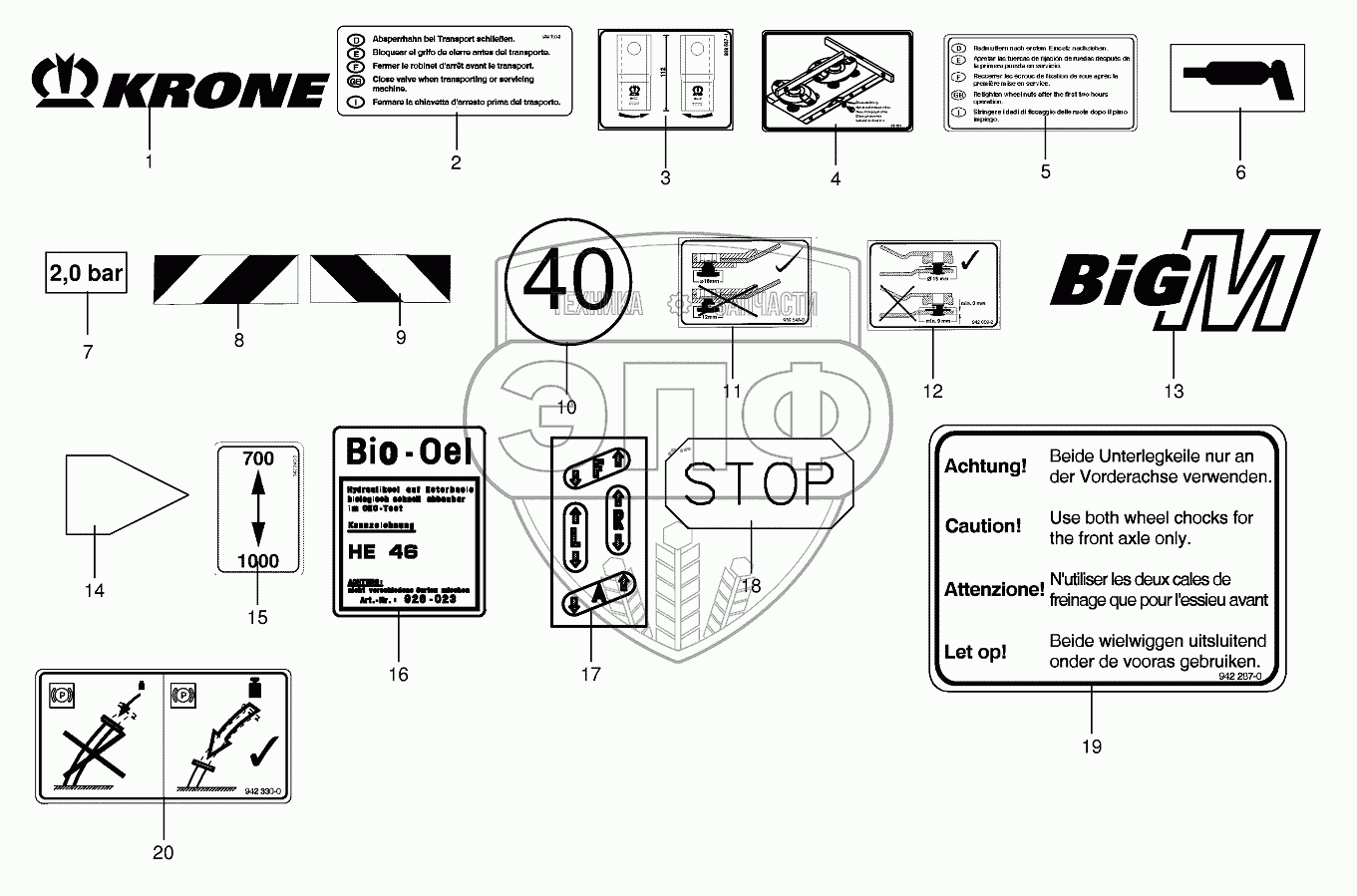 Каталог запасных частей к технике: KRONE BIG-M-I. General information labels
