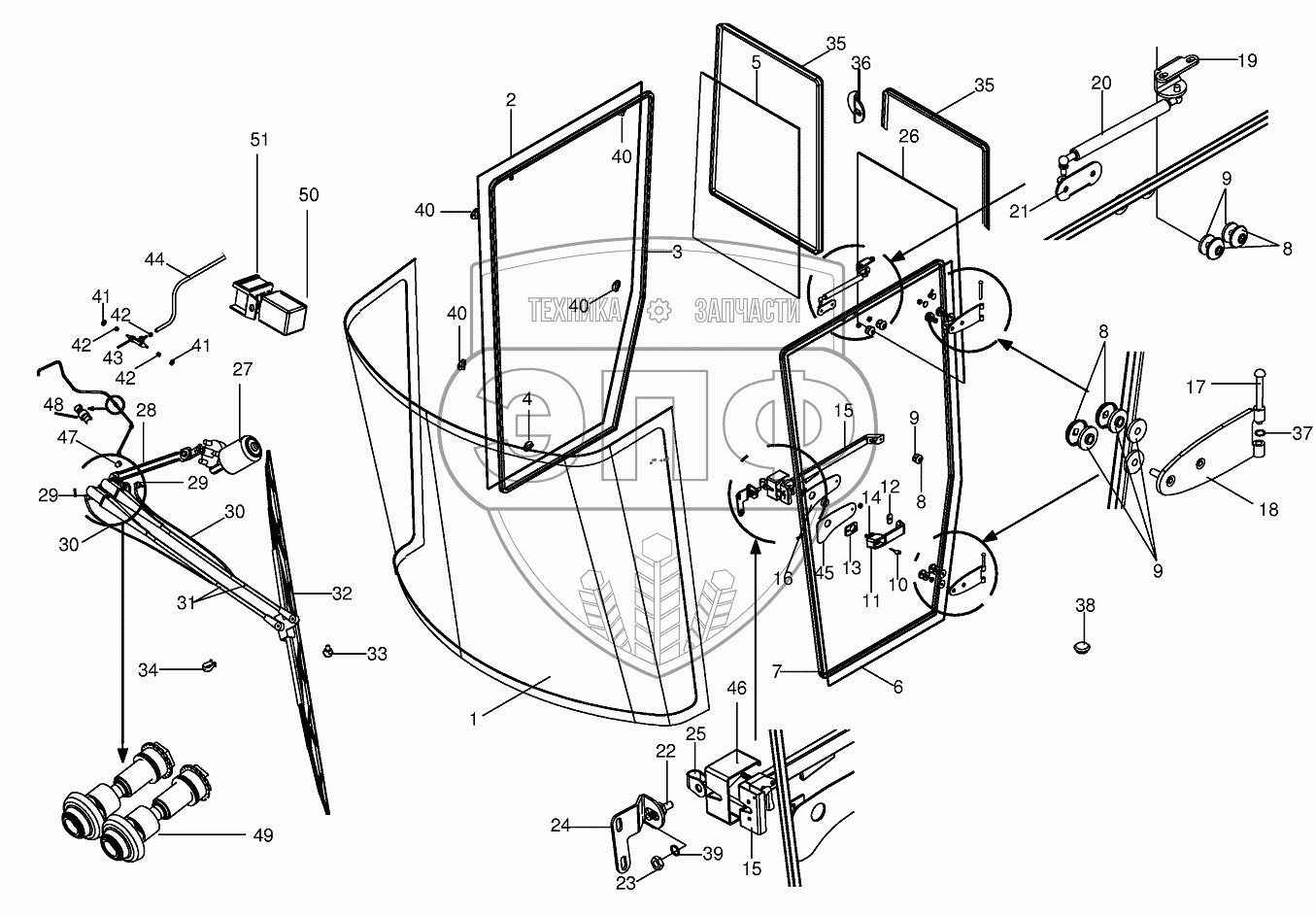 Каталог запасных частей к технике: KRONE BIG-M-II. Cab-glazing
