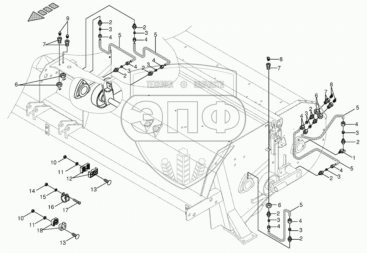 Каталог запасных частей к технике: KRONE BIG-M-II. Lubricating line / grease - lateral CRI