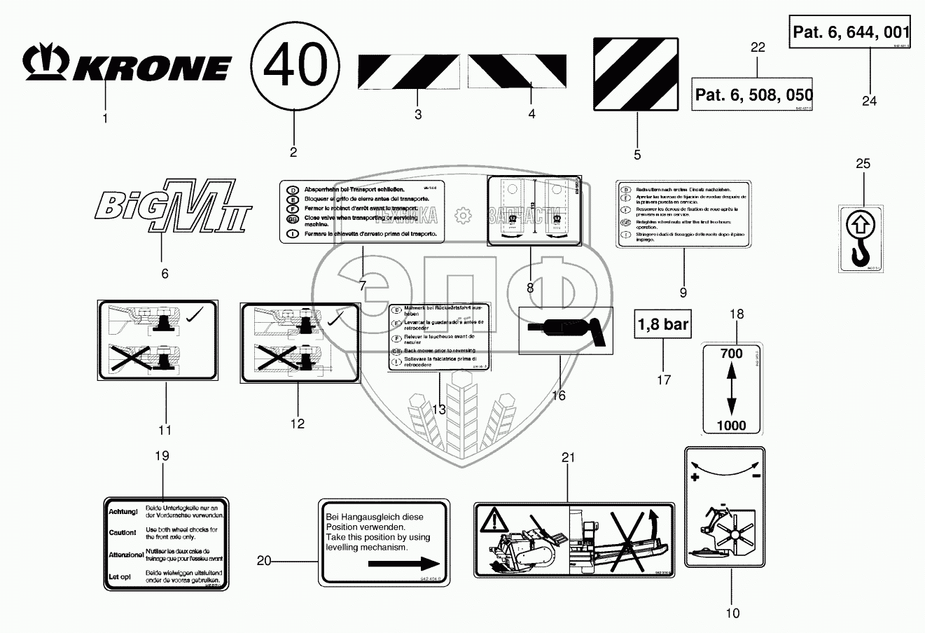 Каталог запасных частей к технике: KRONE BIG-M-II. General information labels