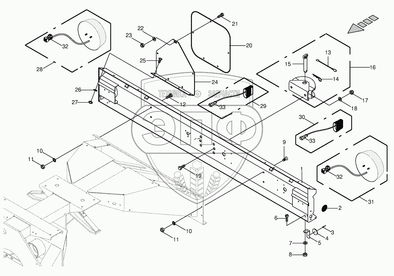 Каталог запасных частей к технике: KRONE BIG-M-II. Lighting bracket / trailer hitch
