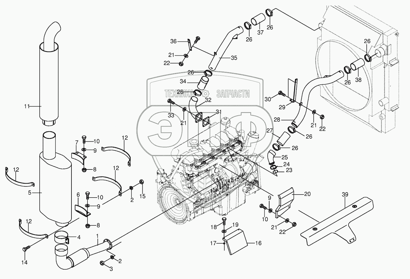 Каталог запасных частей к технике: KRONE BIG-M-II. Silencer / Charge air tubes