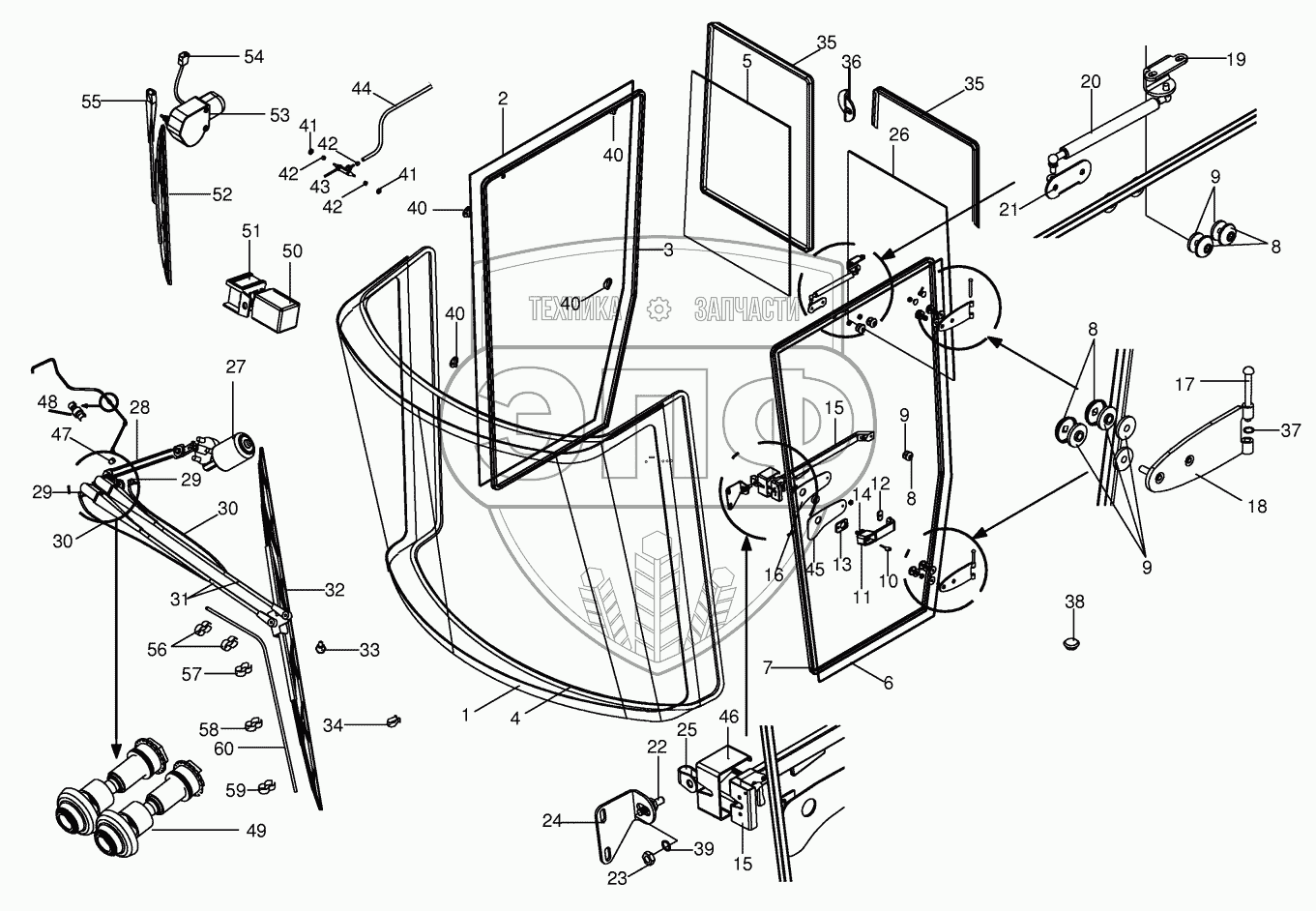 Каталог запасных частей к технике: KRONE BIG-M-II. Cab - glazing