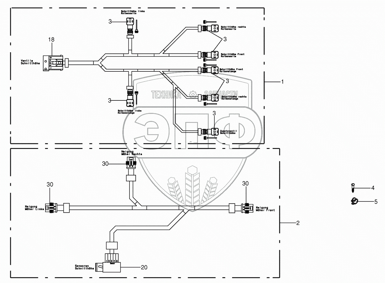 Каталог запасных частей к технике: KRONE BIG-M-II. Wiring Harness - cutting height
