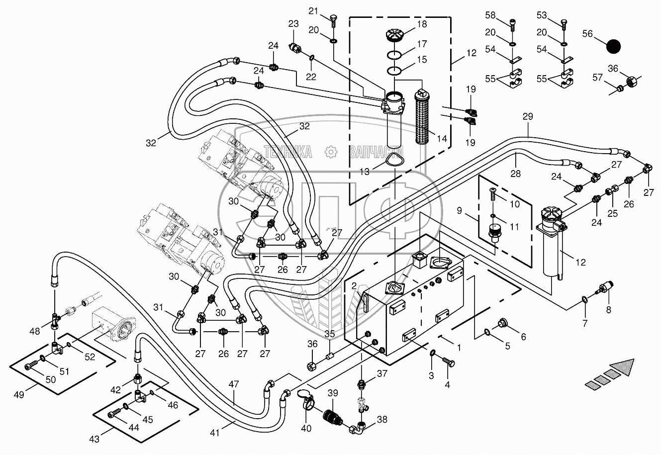 Каталог запасных частей к технике: KRONE BIG-X-1100. Hydraulic tank/suction lines
