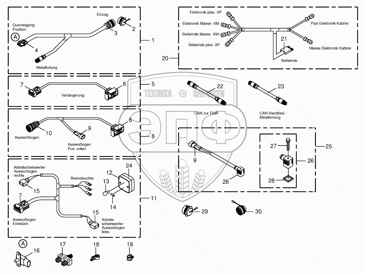 | 20 | 200800381 | Wiring harness-rope winch / electronics cab | Нет на складе | |