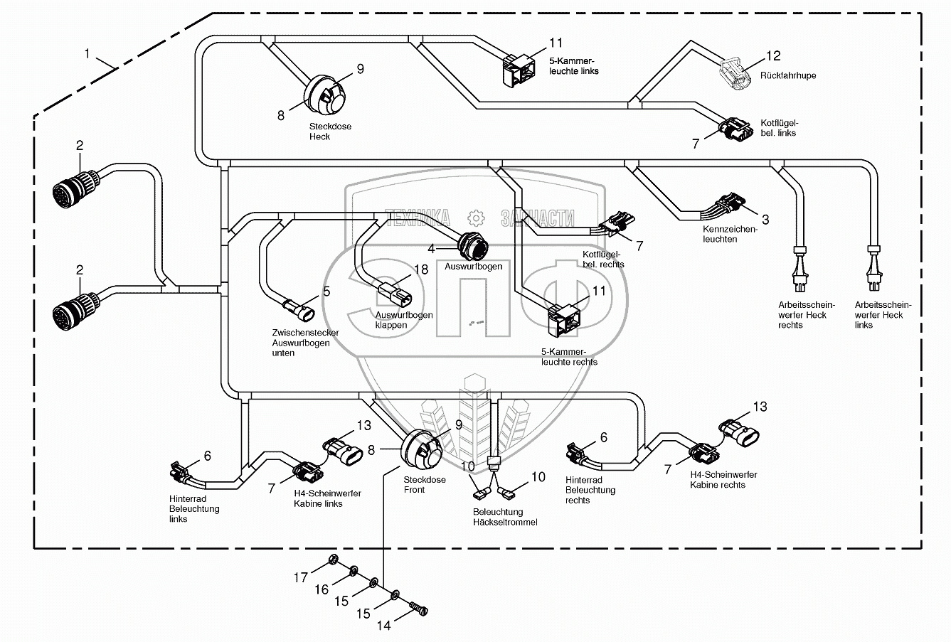 Каталог запасных частей к технике: KRONE BIG-X-1100. Wiring Harness-lighting