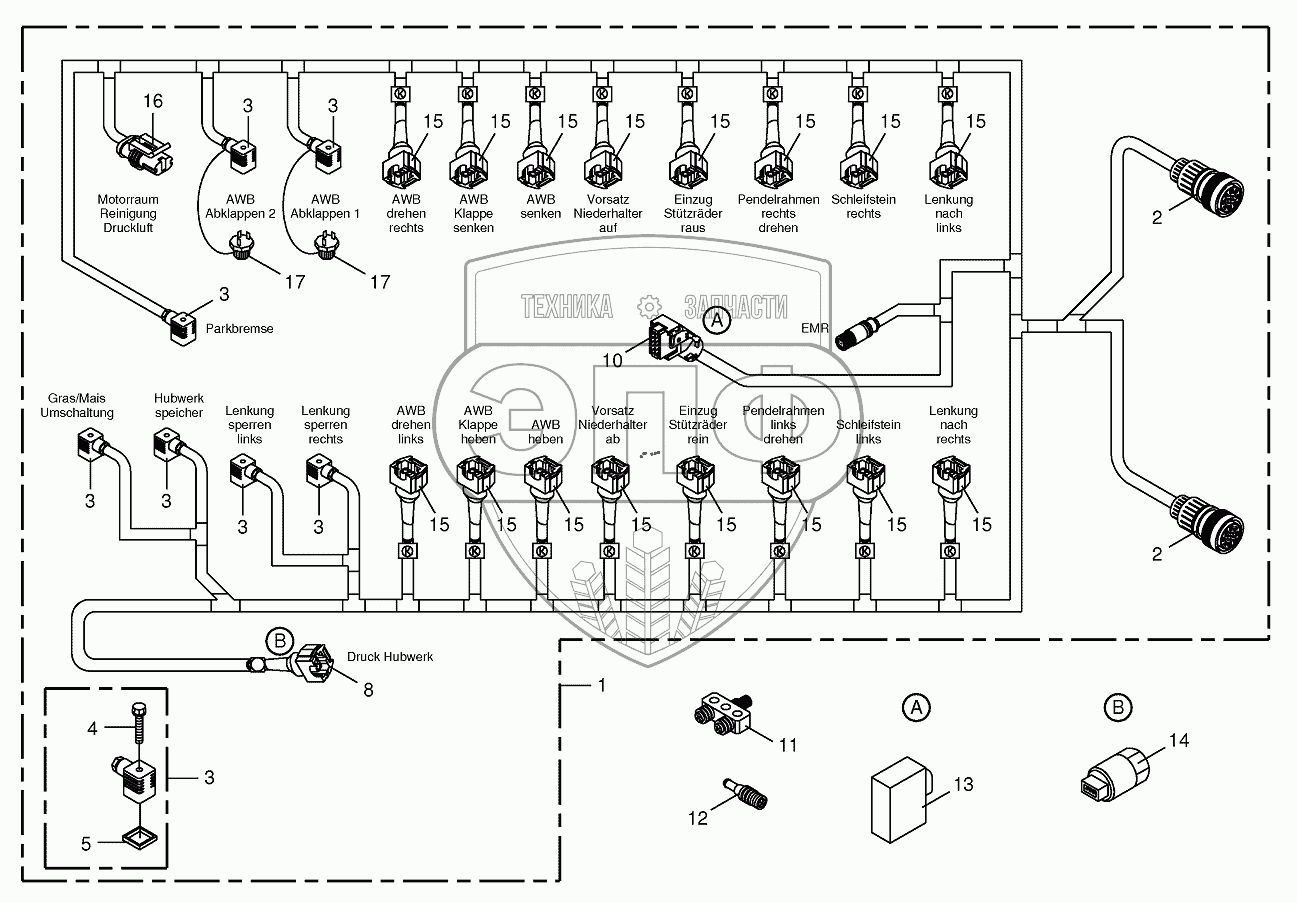 Каталог запасных частей к технике: KRONE BIG-X-1100. Wiring Harness-valve block