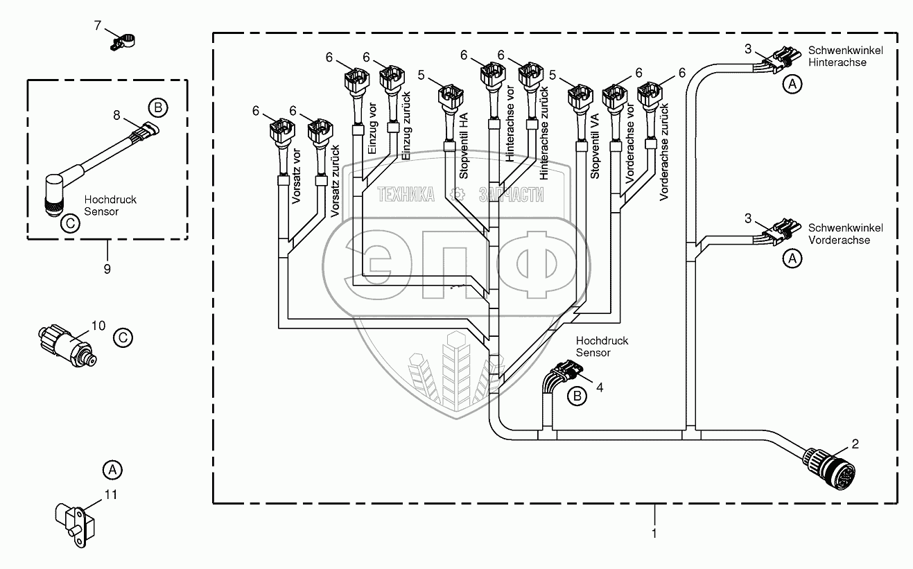 | 1 | 200805890 | Wiring harness-hydraulic pumps | Нет на складе | |