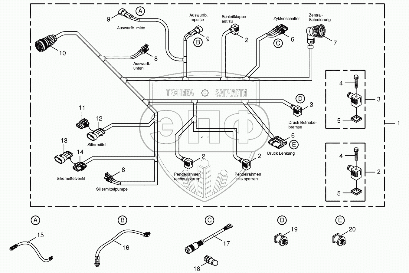 Каталог запасных частей к технике: KRONE BIG-X-500. Wiring harness-below the cabin