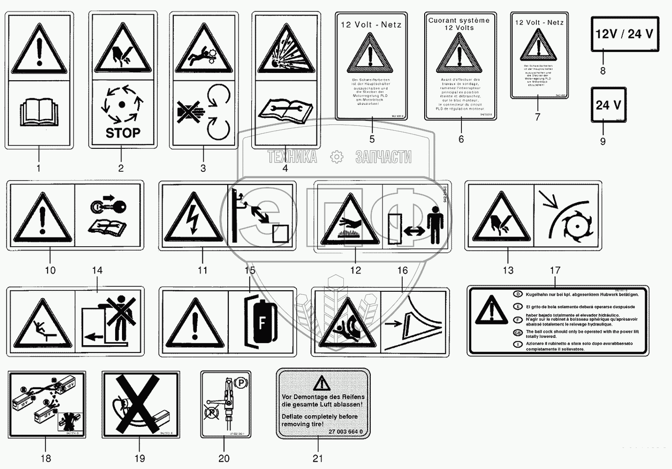 Каталог запасных частей к технике: KRONE BIG-X-500. Warning signs