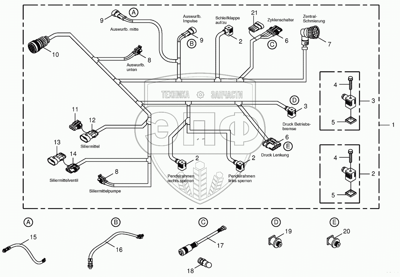 Каталог запасных частей к технике: KRONE BIG-X-500. Wiring harness-below the cabin