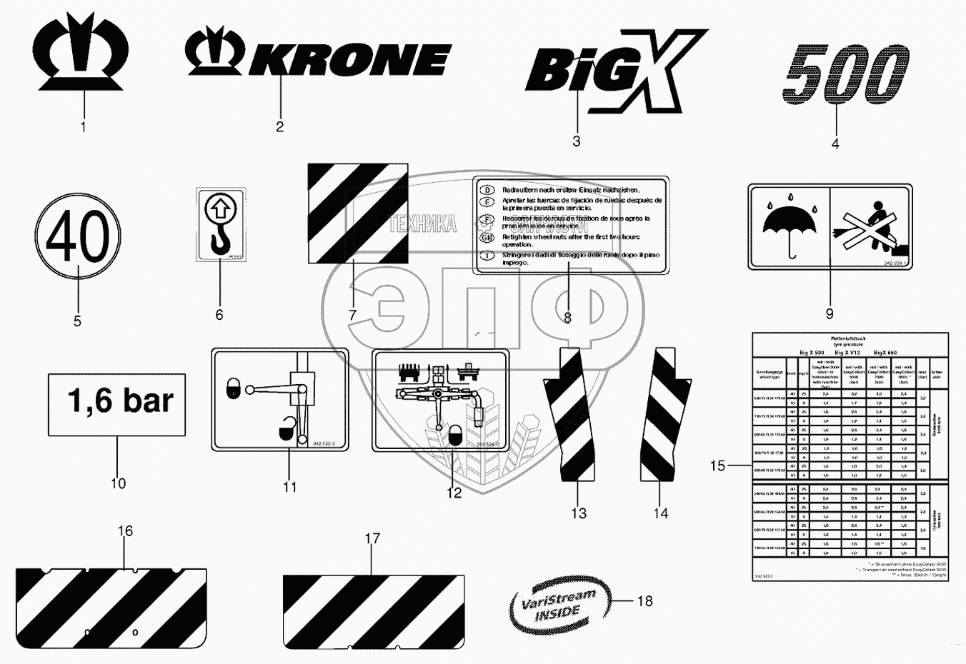Каталог запасных частей к технике: KRONE BIG-X-500. General information labels