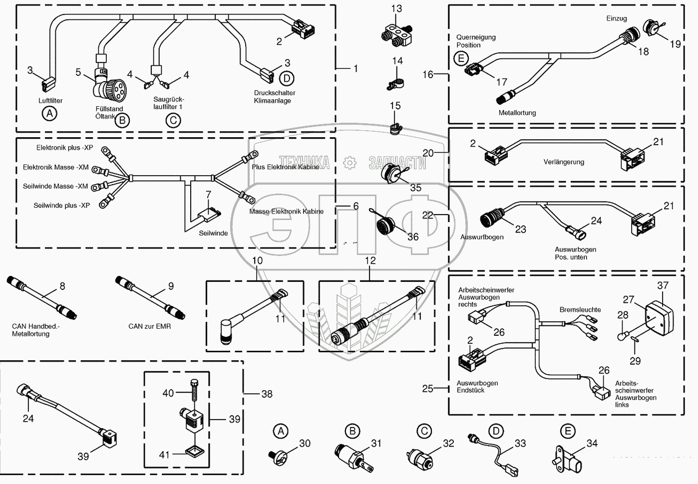 | 6 | 200800381 | Wiring harness-rope winch / electronics cab | Нет на складе | |