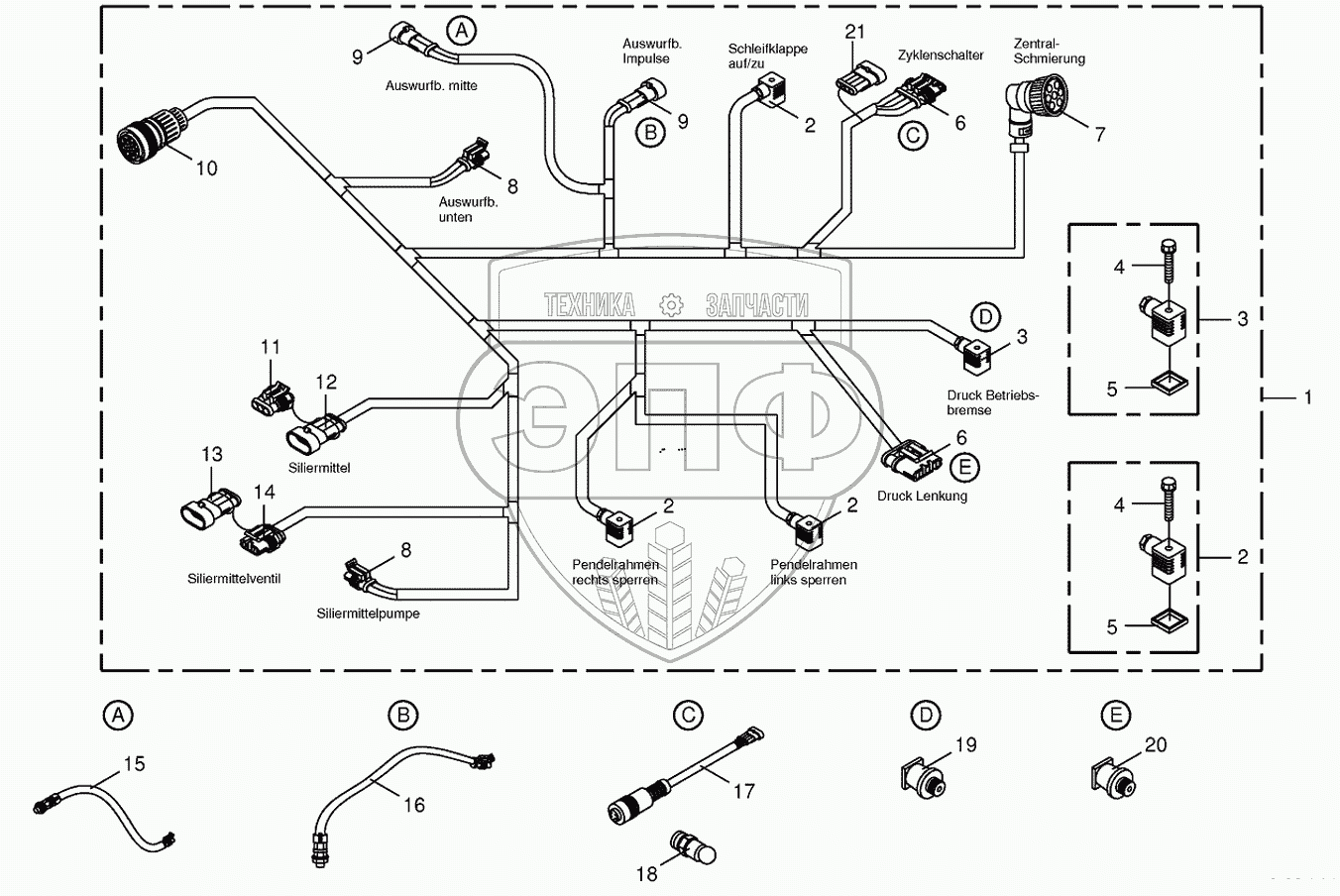 Каталог запасных частей к технике: KRONE BIG-X-500. Wiring harness-below the cabin
