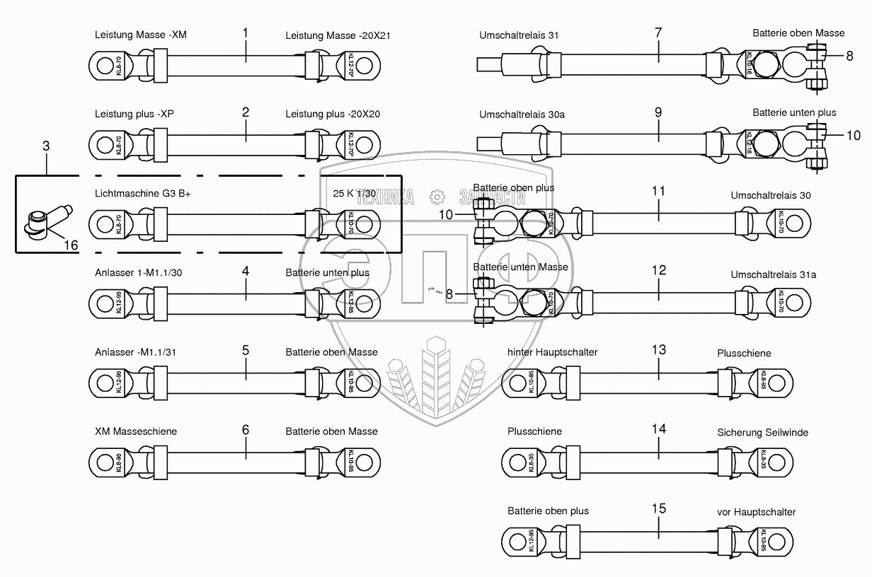 Каталог запасных частей к технике: KRONE BiG X 500. Battery and ground cable