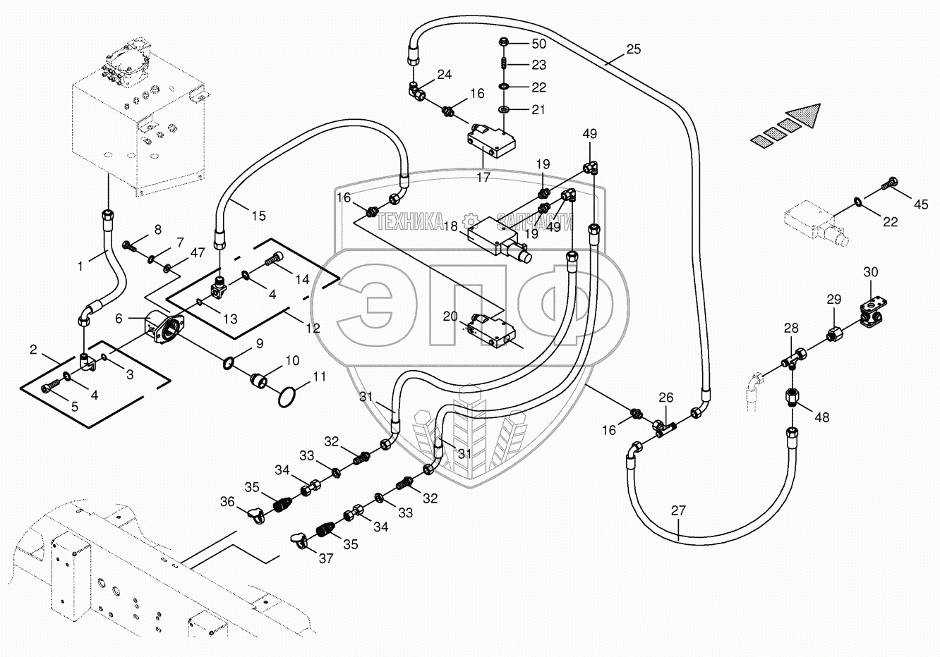 Каталог запасных частей к технике: KRONE BiG X 500. Hydraulics - additive connection back
