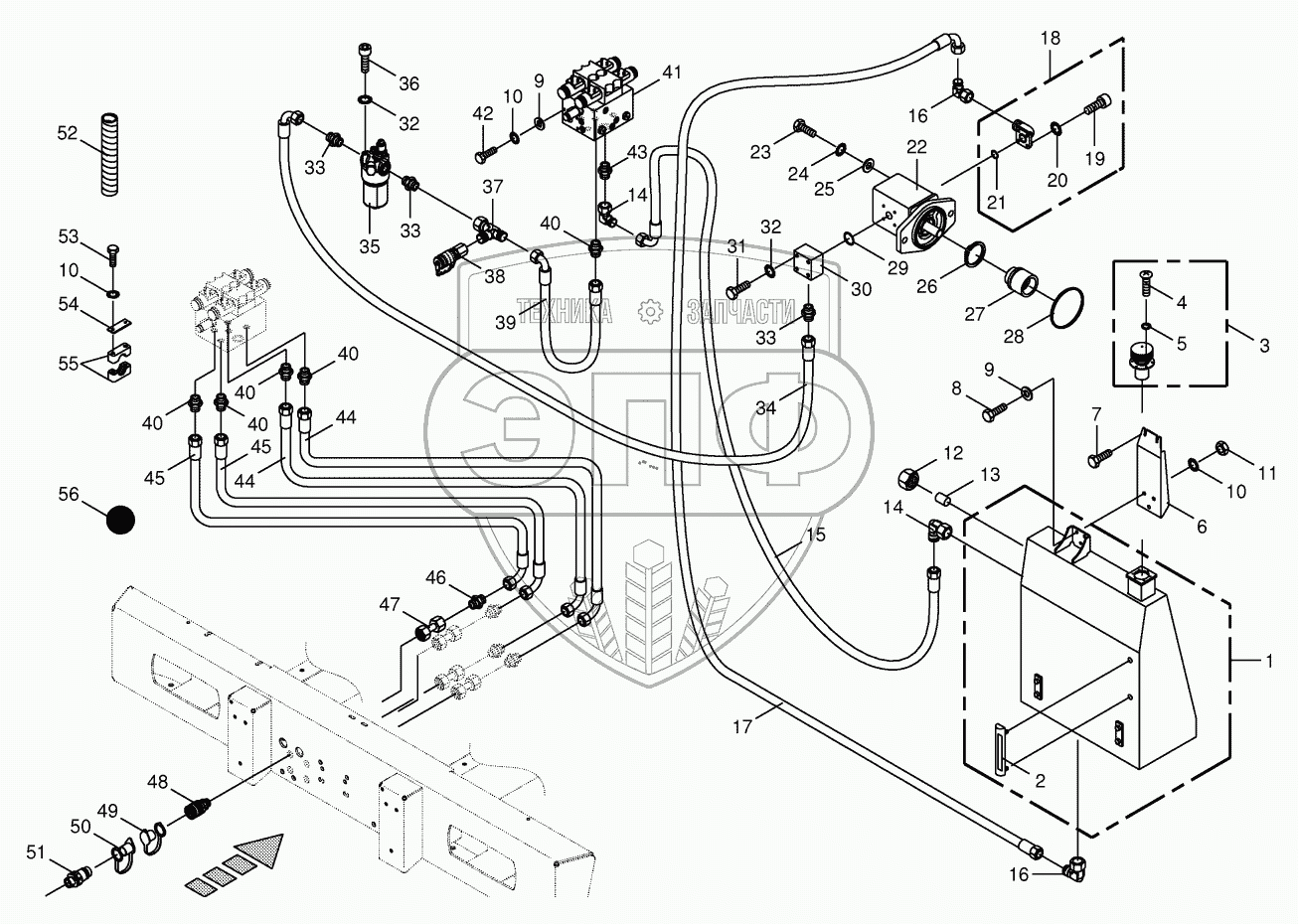 Каталог запасных частей к технике: KRONE BiG X 500. Hydraulics - additive connection back