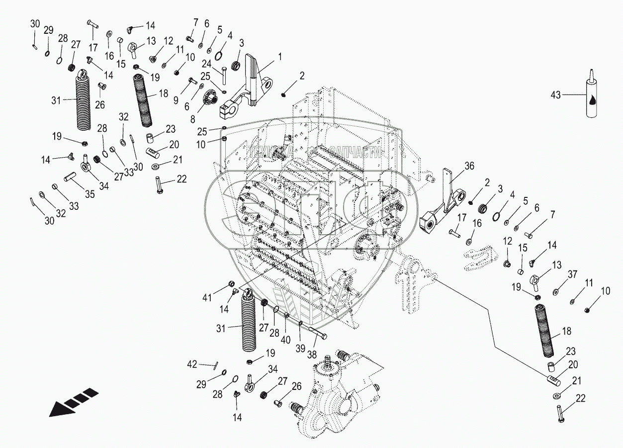 Каталог запасных частей к технике: KRONE BIG-X-530. Oscillating levers/Tension spring