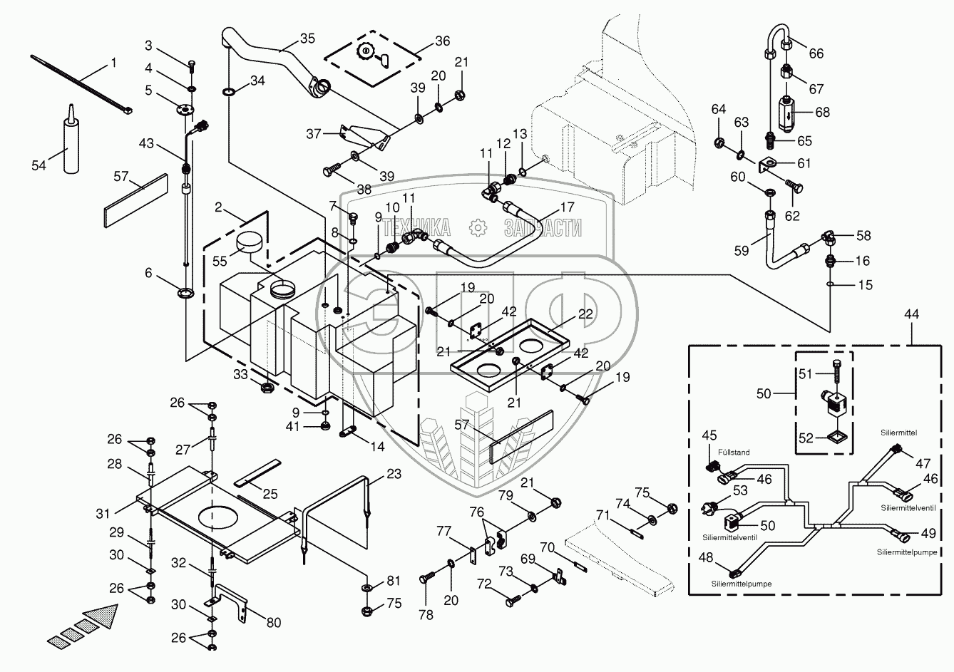 Каталог запасных частей к технике: KRONE BIG-X-600. Auxiliary tank