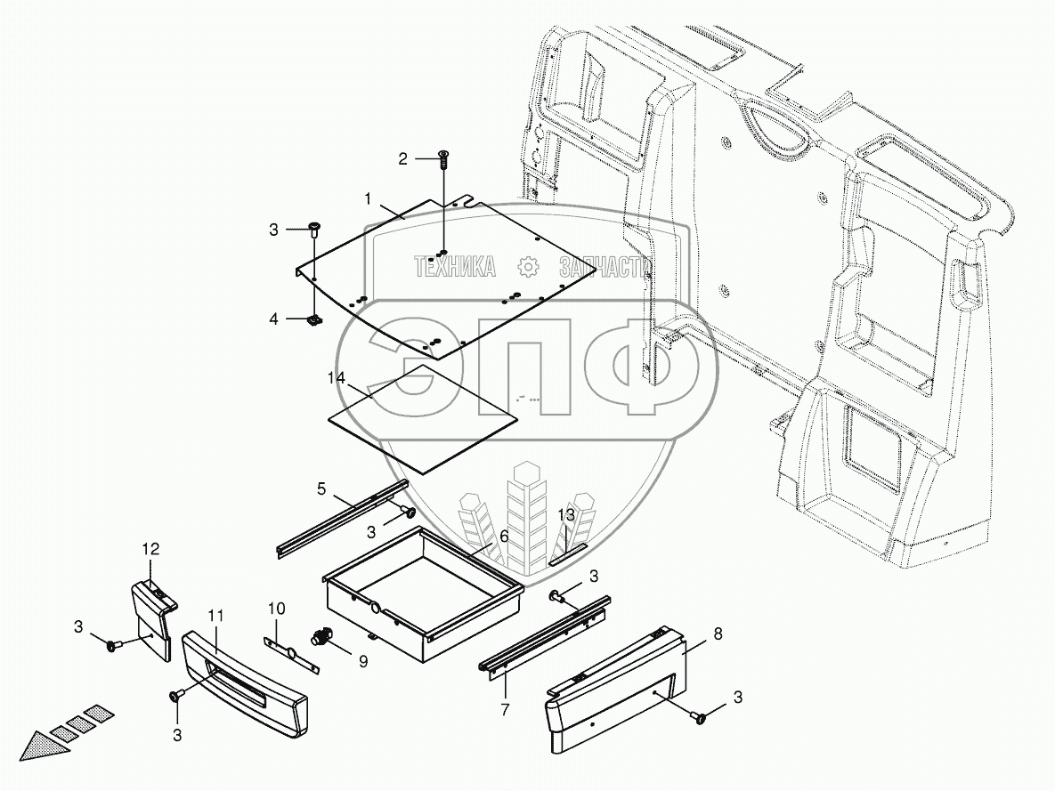 Каталог запасных частей к технике: KRONE BIG-X-600. Cab - drawer