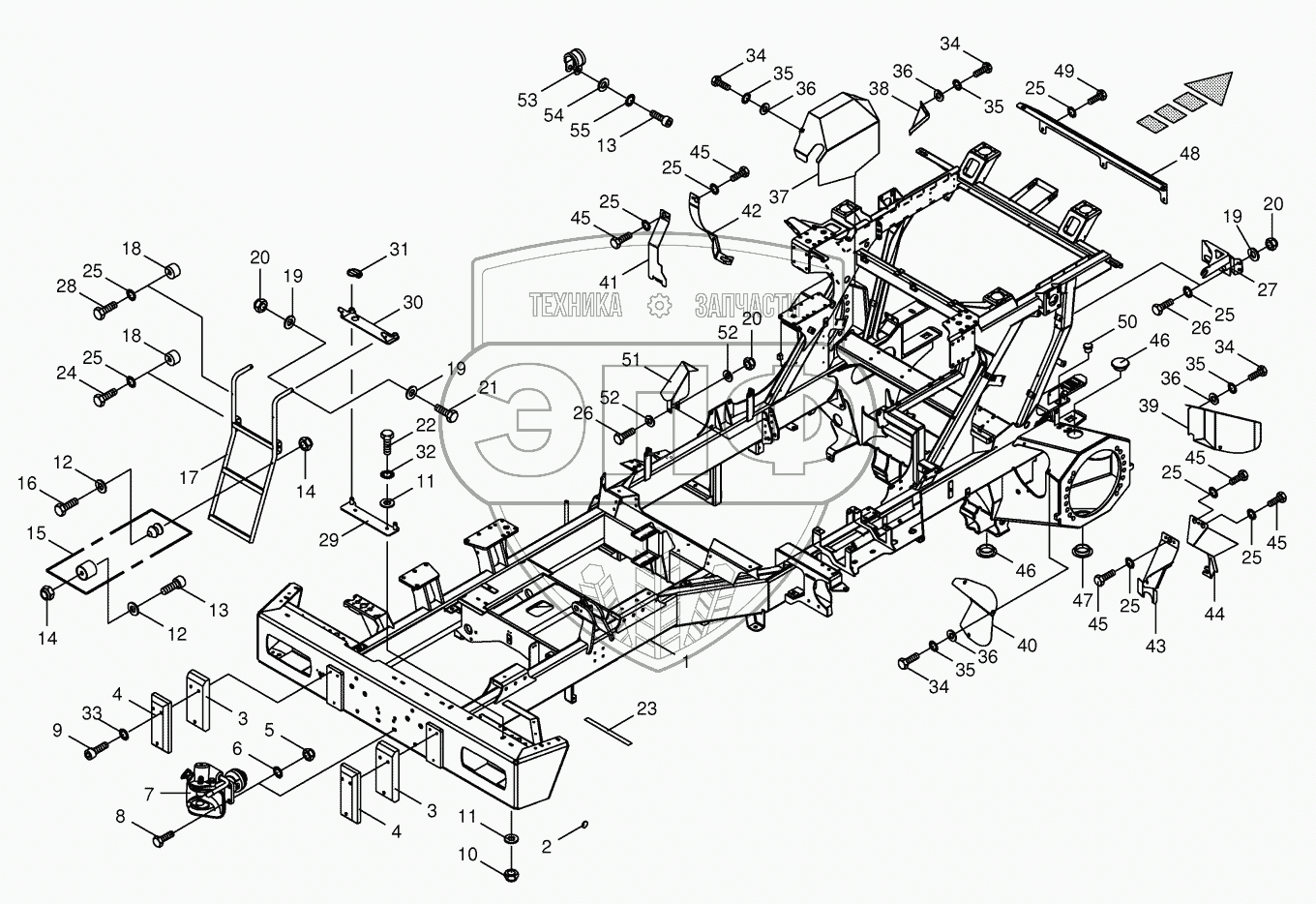 Каталог запасных частей к технике: KRONE BIG-X-600. Frame / trailer hitch / ascending ladder