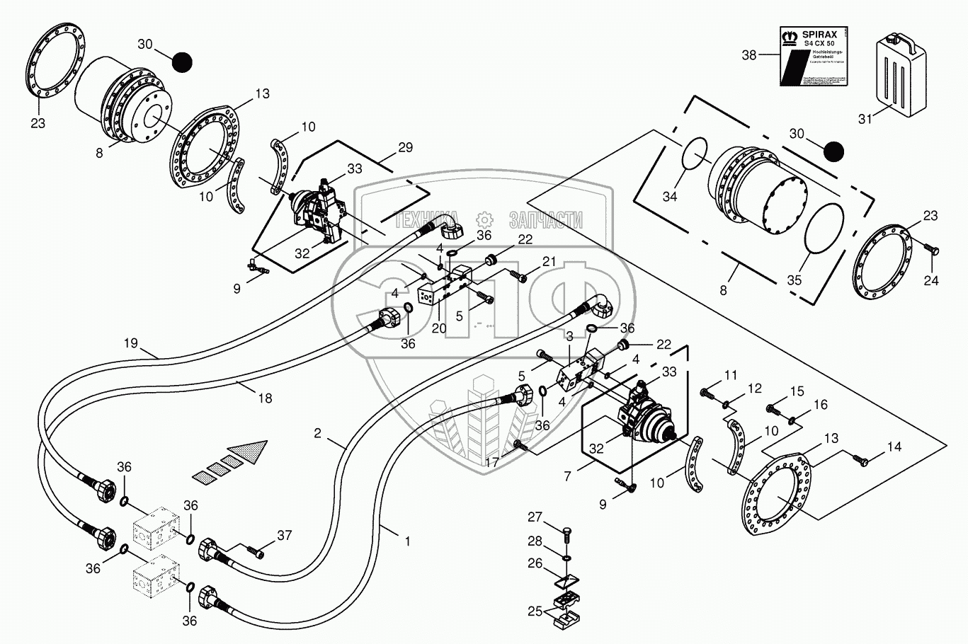 Каталог запасных частей к технике: KRONE BIG-X-600. Traction drive wheel engine -front
