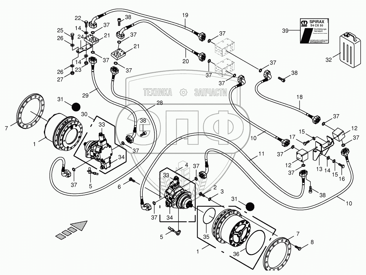 Каталог запасных частей к технике: KRONE BIG-X-600. Traction drive wheel engine -rear