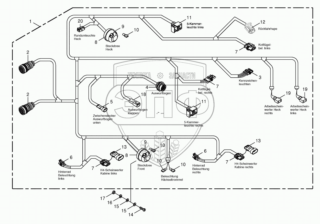 Каталог запасных частей к технике: KRONE BIG-X-600. Wiring Harness - lighting -back