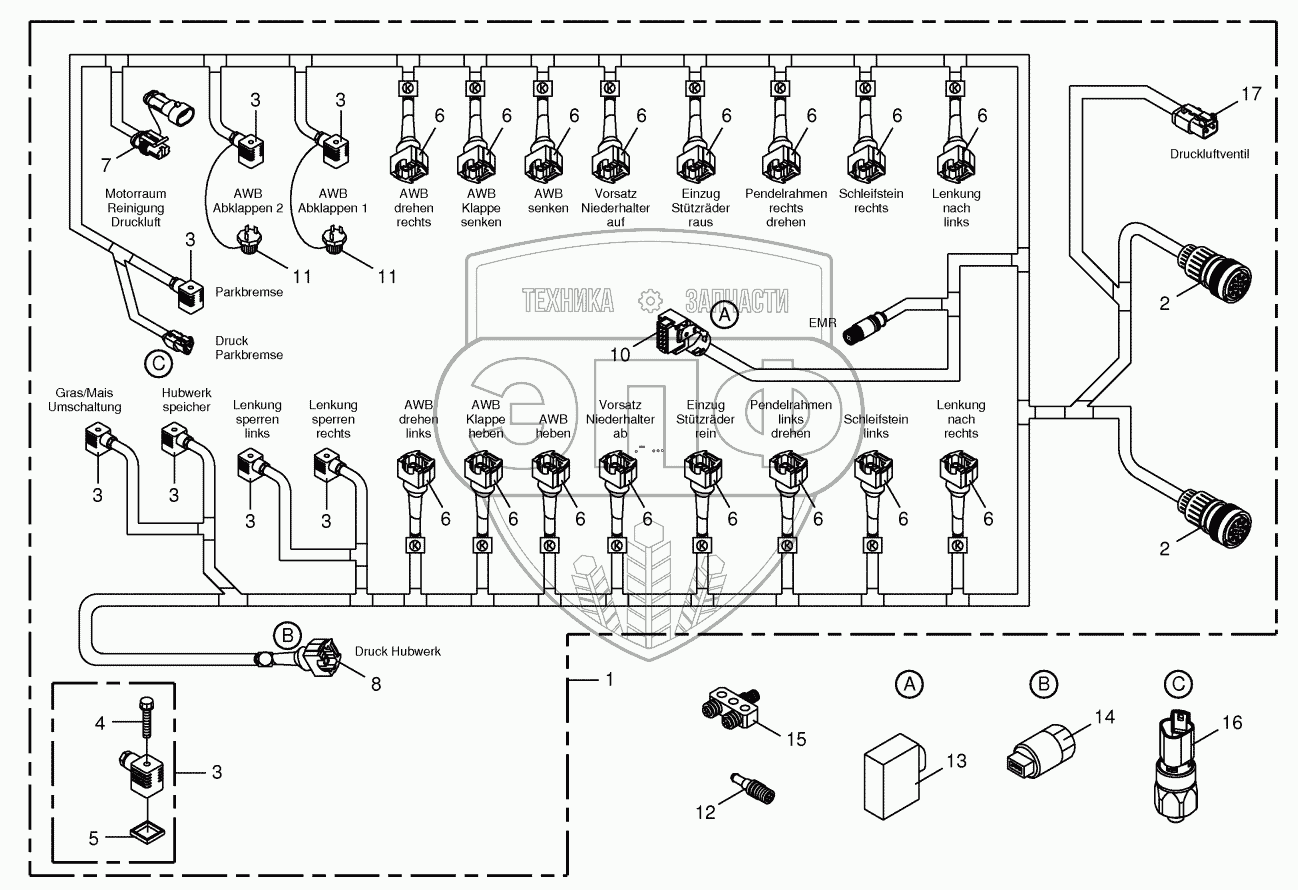 Каталог запасных частей к технике: KRONE BIG-X-600. Wiring Harness - valve block