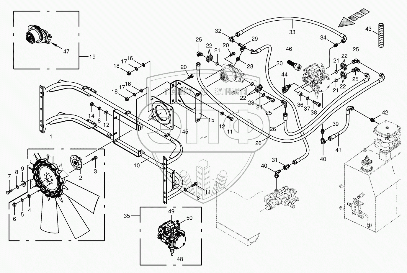 Каталог запасных частей к технике: KRONE BIG-X-600. Ventilator wheel/Drive