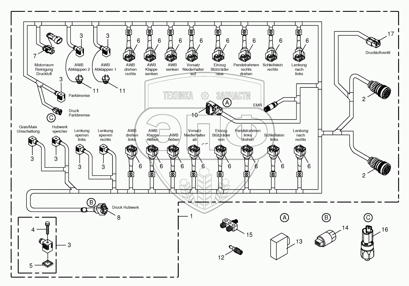 Каталог запасных частей к технике: KRONE BIG-X-600. Wiring Harness-valve block