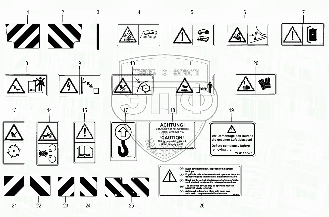 Каталог запасных частей к технике: KRONE BIG-X-630. Warning signs