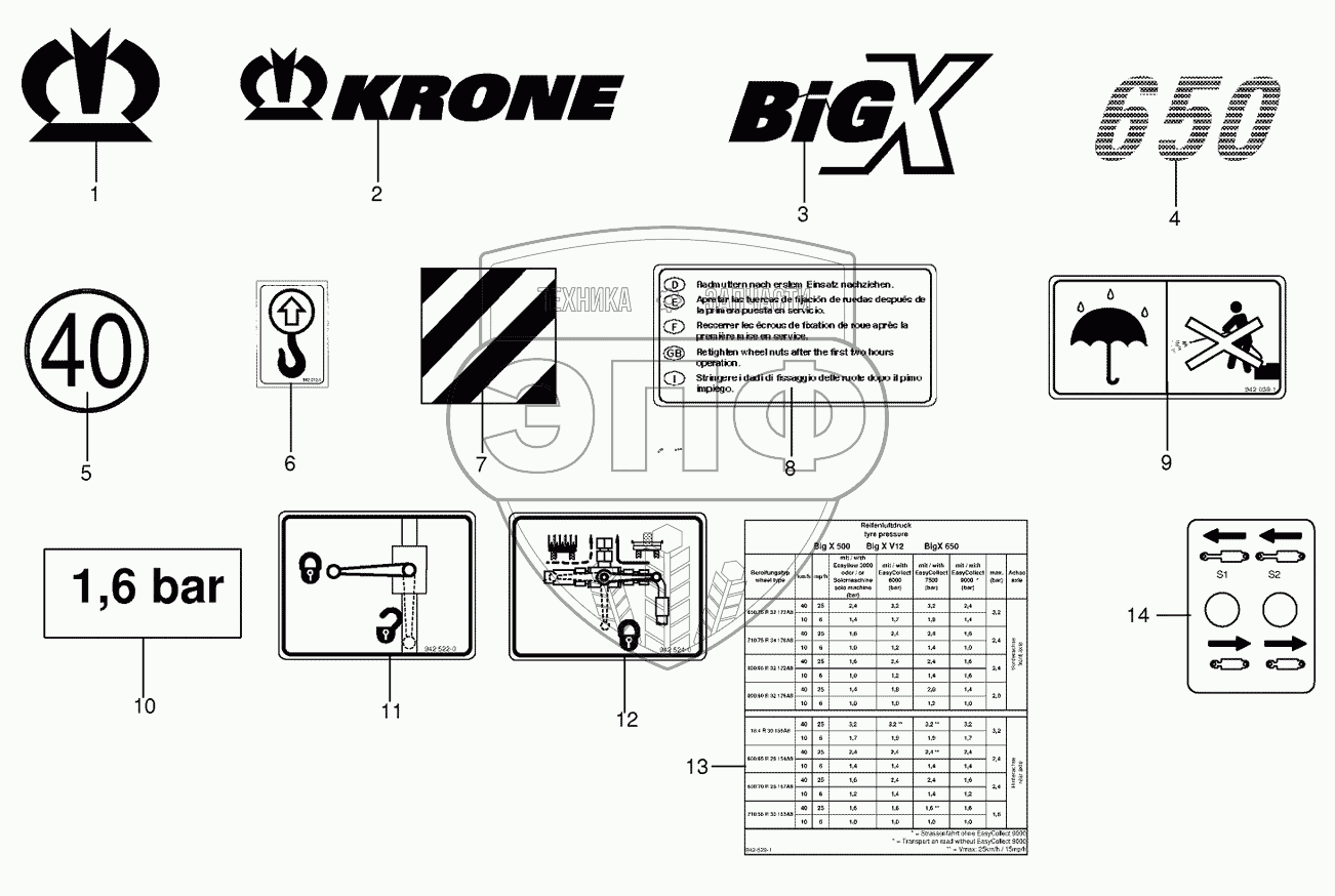 Каталог запасных частей к технике: KRONE BIG-X-650. General information labels