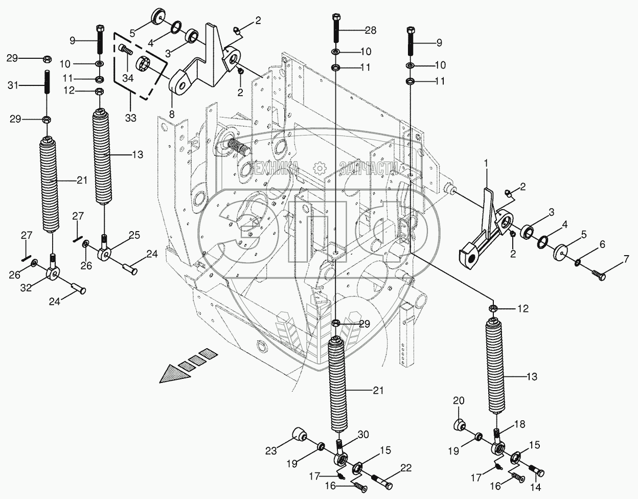 Каталог запасных частей к технике: KRONE BIG-X-650. Oscillating levers/Tension spring