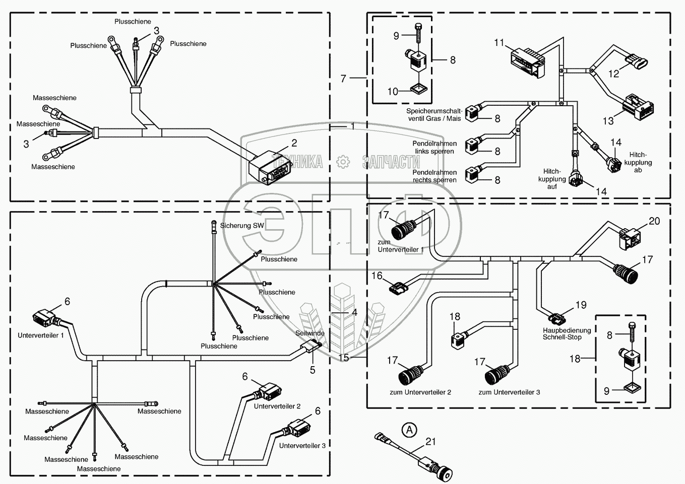 Каталог запасных частей к технике: KRONE BIG-X-650. Several wiring looms