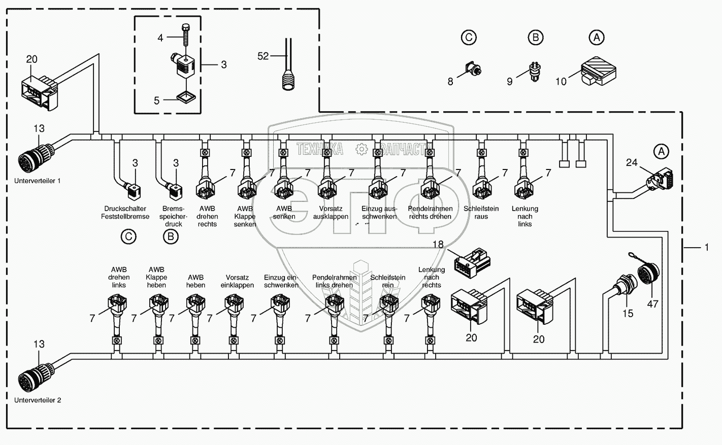 Каталог запасных частей к технике: KRONE BIG-X-650. Wiring Harness- valve block