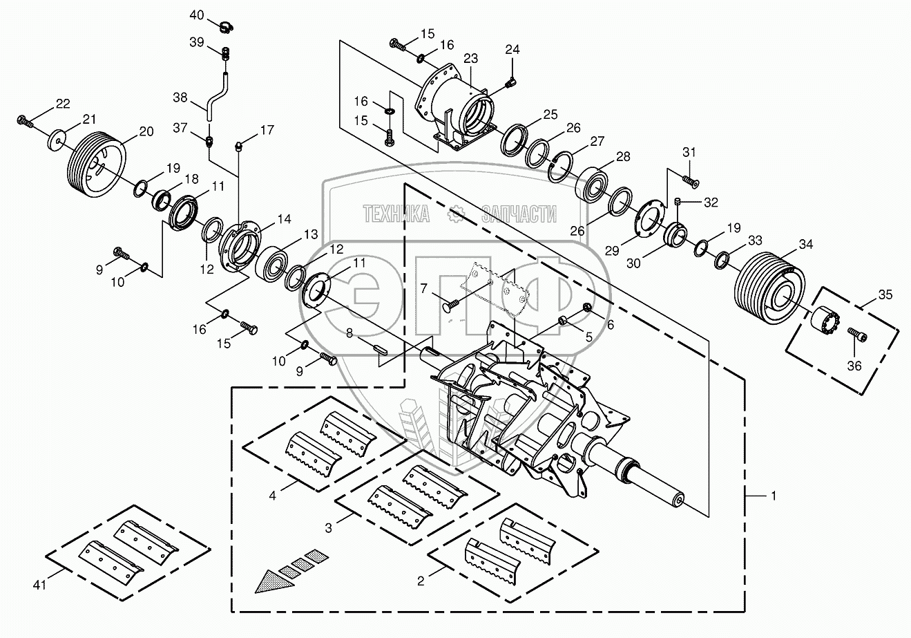 Каталог запасных частей к технике: KRONE BIG-X-650. Discharge accelerator / bearing