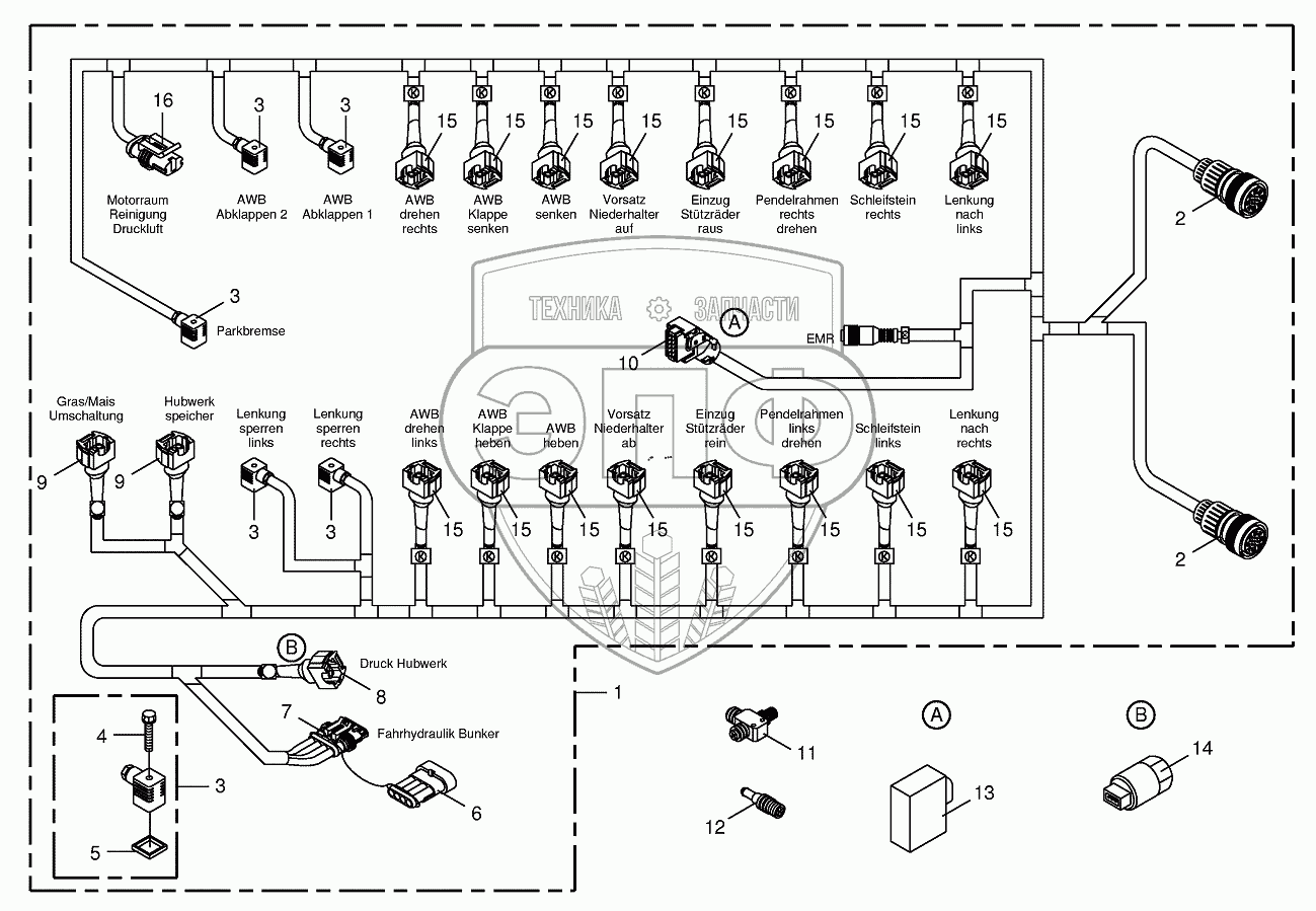 Каталог запасных частей к технике: KRONE BIG-X-650. Wiring Harness-valve block