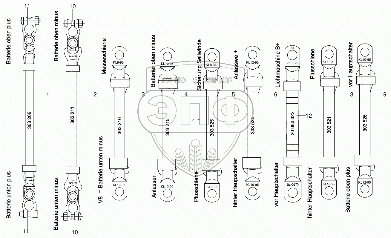 Каталог запасных частей к технике: KRONE BIG-X-650. Battery and ground сale